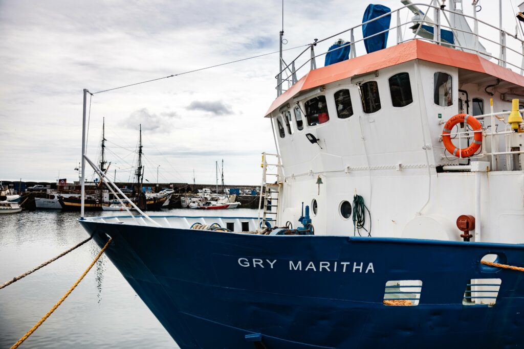 Designed for heavy and awkward cargo, Gry Maritha has long been uniquely suited to carrying the long, fragile wooden gigs that sit at the heart of the championships. Carefully lifted, secured and stowed, each gig boat represents months of training, teamwork and tradition.
